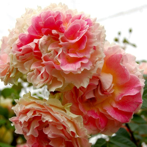 One of the best varieties of climbing roses. The long stems of Cesar roses are densely covered with magnificent flowers, pink in the center and pastel cream on the edges. This variety is a dream for any gardener! The two-meter-long canes can bend under the weight of the flower clusters — each can have up to 9 flowers, so they need to be tied to supports. The variety is undemanding, has strong immunity, and successfully overwinters under cover.
