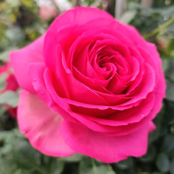 Large, semi-double (9–16 petals), bright pink flowers appear from elongated buds in small clusters. Blooming lasts throughout the entire season. The flower is intensely pink, resistant to unfavorable weather conditions, with 12 petals per flower, flower diameter 7–8 cm.