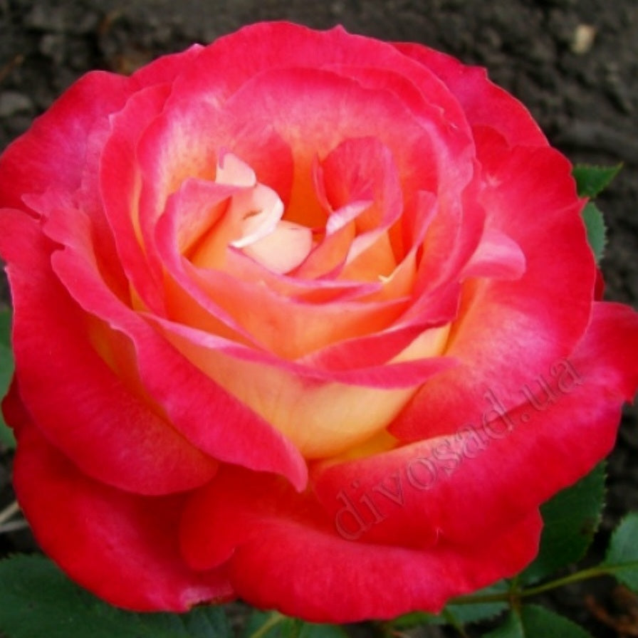 The rose is remarkable for its contrasting petal colors and glossy dark leaves. Bright red flowers and a compact bush make a wonderful addition to a small garden. The flowers are blood-red, with an almost white underside and white streaks on the petals. The buds are semi-double, small, 5-6 cm in diameter. Flowers appear in small clusters, usually 3-5 per cluster, sometimes singly. Blooming is abundant and long-lasting. The flower scent is light. The bush is very thorny, with a height of 60-70 cm. Disease resistance is good, and the variety is winter-hardy.