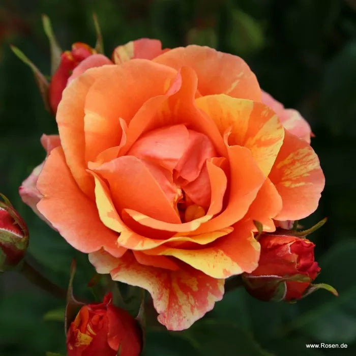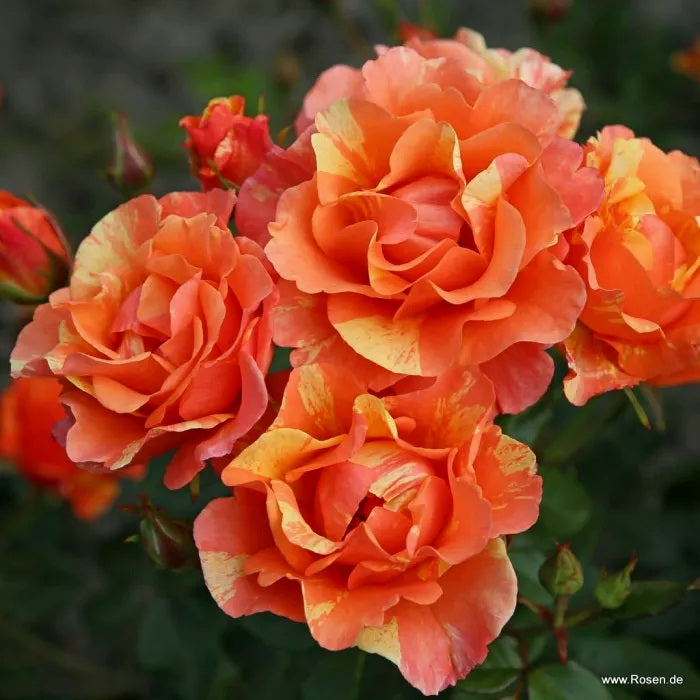 Lollipop® is a floribunda rose (~60 cm tall × 40 cm wide) with semi-double, orange-yellow flowers (6–7 cm). It blooms repeatedly from spring to autumn, has a light fruity fragrance, and glossy, healthy foliage. Ideal for flower beds, borders, and pots.