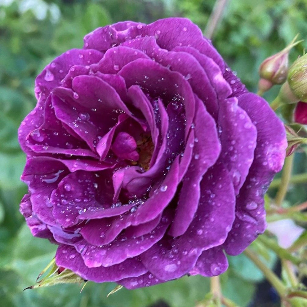 A rose of amazing beauty. The color is rather violet, sometimes dark violet. When opening, it reveals bright yellow stamens, which does not spoil the impression at all. Minerva has a sweet fragrance typical of roses of this color. Blooms in clusters. The flowers last quite long, and the color becomes even richer than at the beginning of flowering. Among all the rose's merits, you can add good disease resistance. The foliage is large, green, and matte.