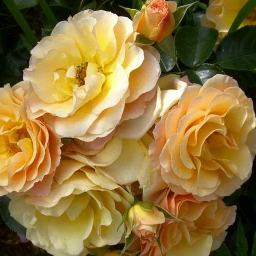 Rugelda – viena no labākajām dzeltenajām rugozu rožu šķirnēm, ļoti spēcīga un pievērš sev uzmanību. Ziedi atveras no koši sarkaniem pumpuriem, tie ir citrondzelteni ar sarkanīgu malu, izbalē līdz krēmīgi rozā tonim, lai gan kopumā krāsa stipri mainās atkarībā no laikapstākļiem. Ziedlapiņas ir viļņainas, pēc formas atgādina pomponus. Ziedi veidojas lielās ziedkopās pa 5–10 ziediem, parasti stublāju galos. Stublāji ir ļoti ērkšķaini, biezi, jaunie dzinumi ir skaistā purpursarkanā krāsā. Lapas ir lielas, nedaudz krunkainas, ļoti spīdīgas. Šķirne ir diezgan izturīga pret slimībām, sasniedz līdz 2 m karstā klimatā, bet labi reaģē uz apgriešanu līdz 150 cm pavasarī, kas veicina jaunu ziedošu dzinumu veidošanos. Sertificēta pēc ADR sistēmas 1992. gadā.