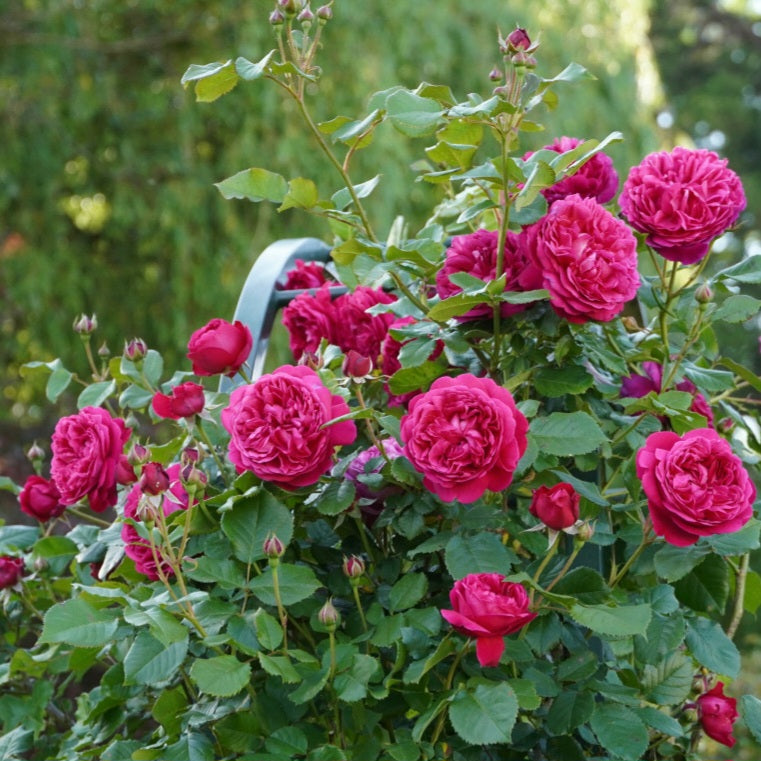 Ziedi ir lieli, dubulti, antīkas formas, rozā karmīna krāsā, ziedkopās. Spēcīgs Damaskas rožu un citrusaugļu aromāts. Ziedēšana ir bagātīga un atkārtota. Lapu masa ir spīdīga, tumši zaļa, veselīga, uzsver ziedu skaistumu un pārpilnību.