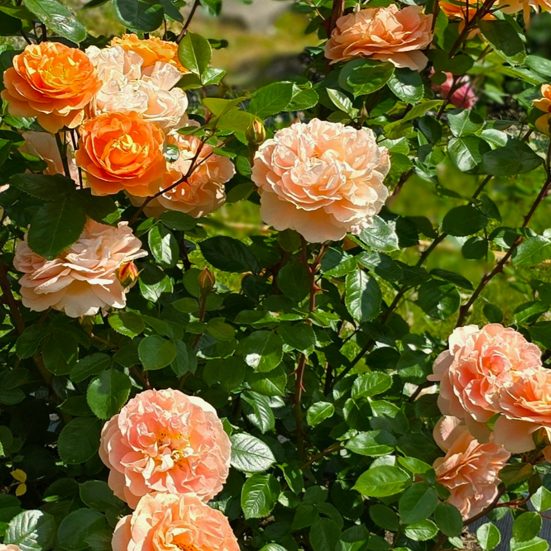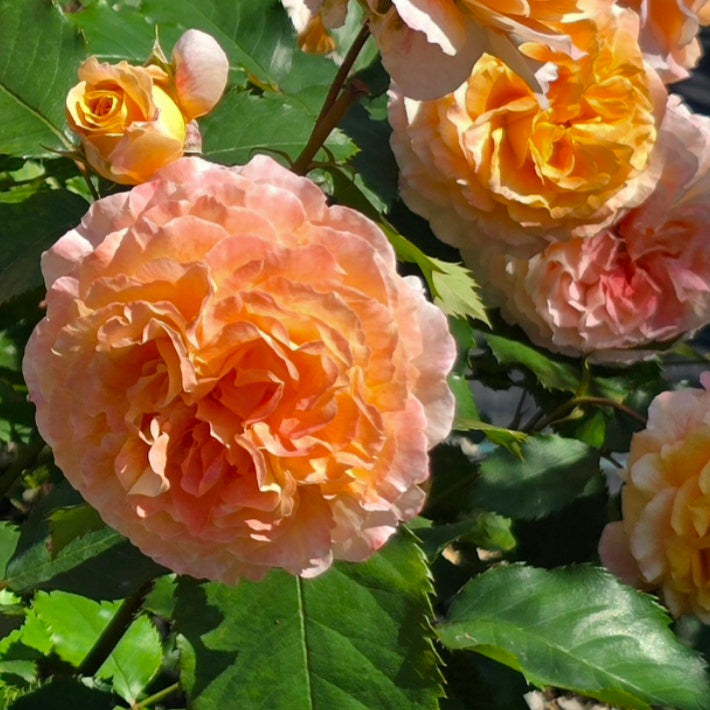 Ziedi aprikožu oranžos toņos. Ziedlapiņas viļņotas sakārtotas lielās ziedkopās. Zied bagātīgi un atkārtoti. Krūms stāvs, labi zarots ar veselīgu lapotni.