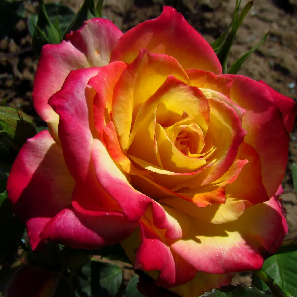 Яркая и жизнерадостная флорибунда. Эта великолепная роза, выведенная Морисом Гестом, образует крупные кисти ярко-желтых полумахровых цветов с более светлыми примуловыми центрами и карминово-розовыми краями на заостренных лепестках. Ранняя и быстро повторяющаяся в цветении, роза Birthday Surprise обладает очень здоровой листвой, устойчивой к болезням. Куст компактный и округлый, идеально подходит для посадки в контейнеры или в средней части клумбы.