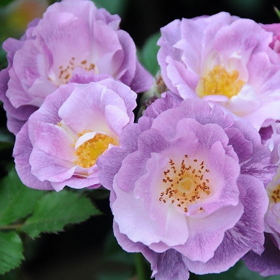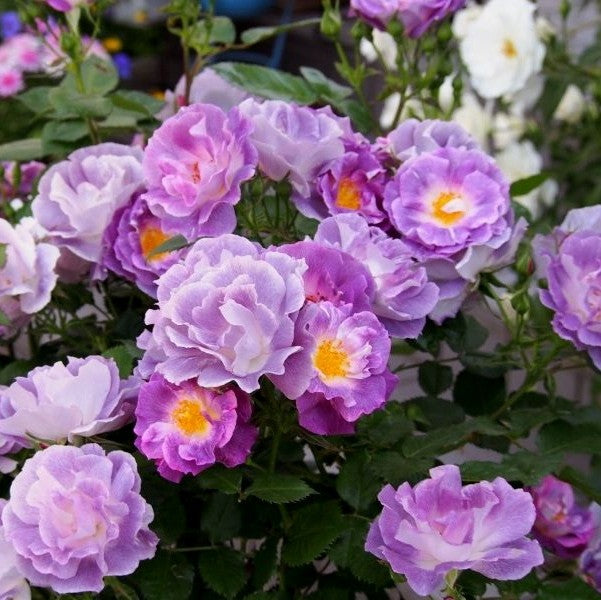 Главная ценность этого сорта - сочетание необыкновенной окраски, невероятно обильного и достаточно продолжительного цветения. В каждом цветке - не более 16 лепестков, но роза формирует мощные соцветия - до 15 бутонов в каждом. На пике первой волны цветения она покрыта десятками небольших (6-7 см) слабомахровых цветов. Розы распускаются пурпурными или лиловыми, с чуть более насыщенными краями лепестков, но постепенно выгорают до светло сиреневого, иногда - с пепельным оттенком. Благодаря этой особенности и получаются великолепные букеты в пастельных тонах.