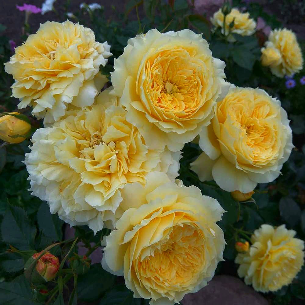 Компактная роза с очень выразительными, ярко-лимонными, густомахровыми цветками. Долго держит цвет, не выгорает даже на ярком солнце. Аромат пряный. Куст компактный, хорошо цветет повторно.