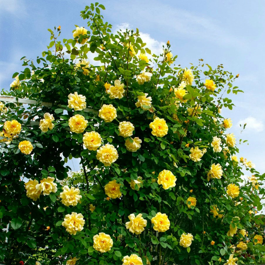 Сильнорослая роза отличается высокой устойчивостью к заболеваниям и превосходной морозостойкостью. Цветы имеют золотисто-желтый оттенок, со временем бледнея до желтого, собраны в махровые кисти по 5-10 штук. Куст ветвистый, прямостоячий, с матовой, плотной листвой. Цветение сопровождается свежим фруктовым ароматом с лимонными нотками. Роза Golden Gate удостоена множества международных наград, включая Золотую медаль в Baden-Baden (Германия, 2006), приз за лучший клаймбер в Belfast (Великобритания, 2008), и первое место на соревнованиях в Hradec Kralove (Чехия, 2009).