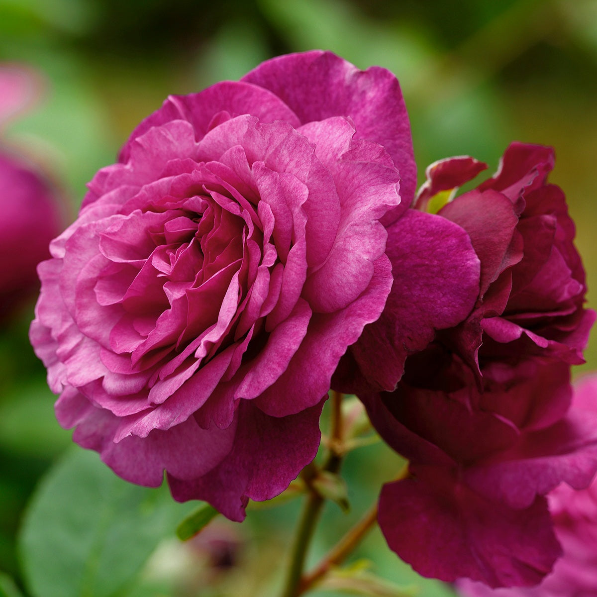 Роза с махровыми цветами насыщенного розового цвета с необычным лиловым оттенком. Аромат довольно сильный, фруктовый, сочетает в себе цитрус и манго. Цветение обильное в кистях до 5 крупных цветов. Листва темно-зеленая, блестящая, устойчивая к грибковым болезням.