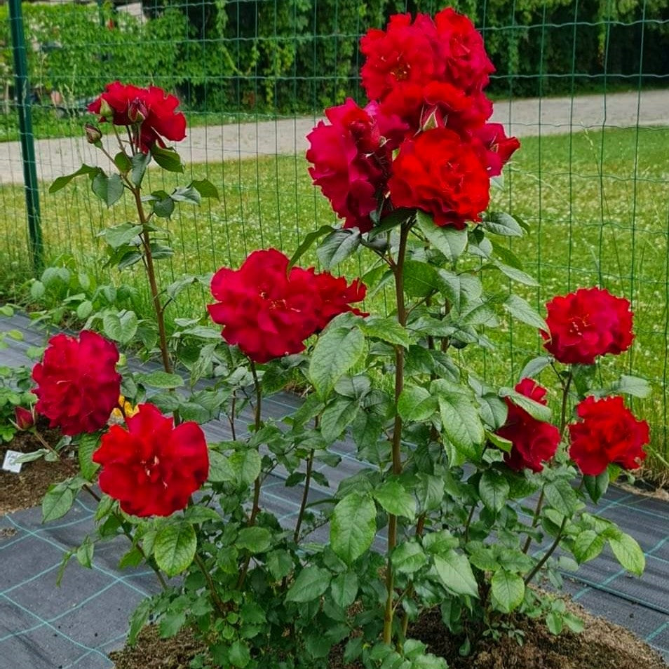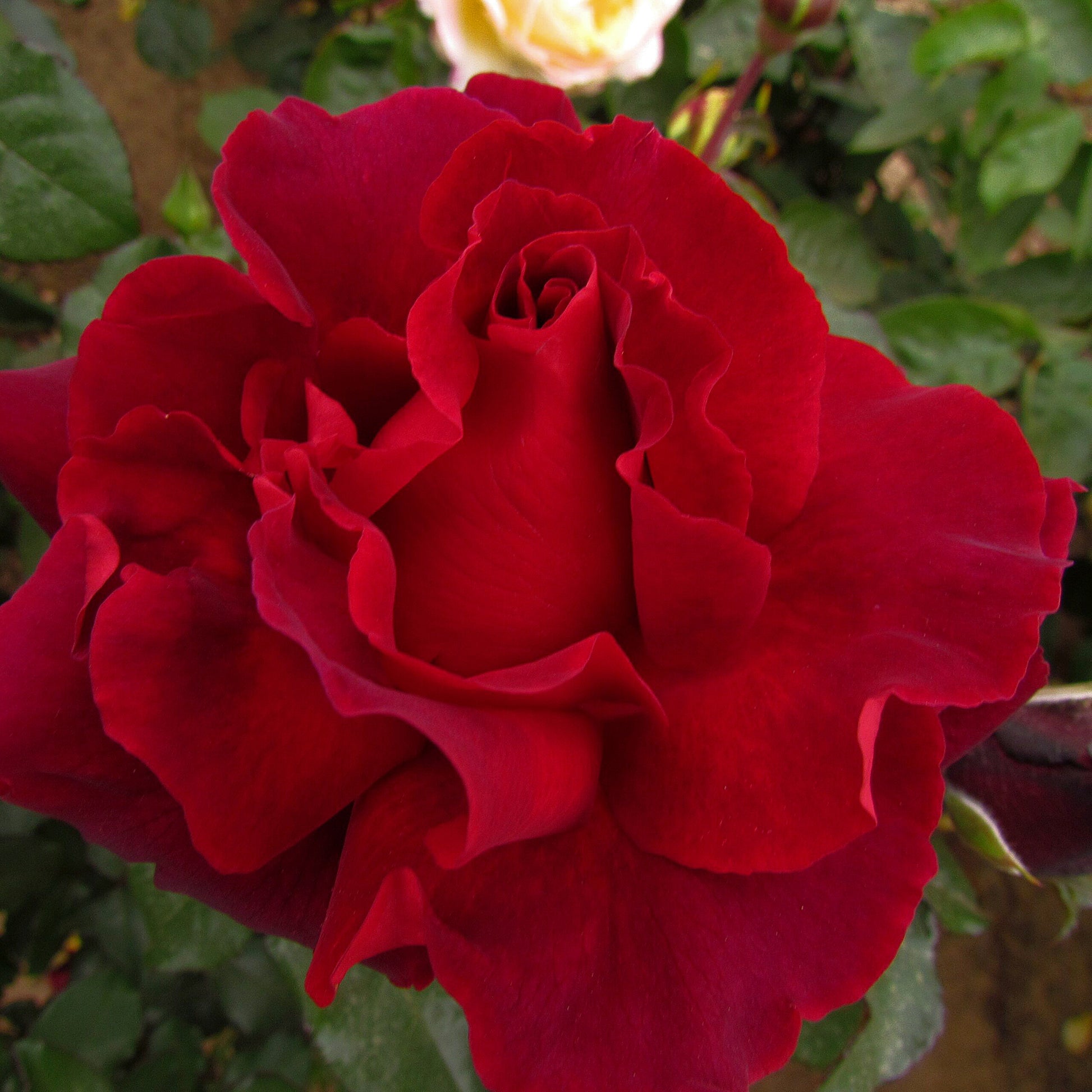 Роза привлекательной формы, цветы темно-бархатно-красного цвета с приятным ароматом и совершенно необычной закрученной формой в стиле цветка камелии. Цветет одиночно или соцветиями до 3 шт. на одном стебле. Листва очень здоровая, бронзово-зеленого цвета. Подходит для срезки.