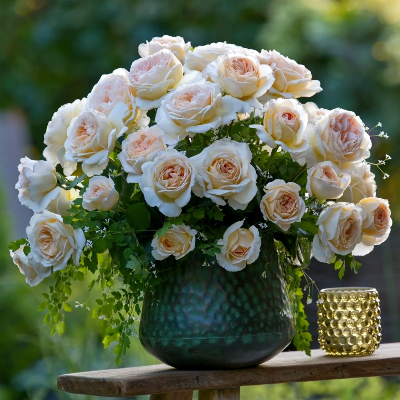 Сорт с вертикальным габитусом и крупными, очень махровыми цветками романтической формы. Этот сорт с его нежным, пряным ароматом и хорошей устойчивостью к болезням, превращает розу в любимый сорт садоводов. Роза придаст вашему саду красивый и изысканный вид. Эти нежные розы имеют мягкие румяные лепестки, закрученные в нежно-розовый центр. Диаметр бутонов - 9-10 см. Цветение длится с июня до начала октября. Отличается обильным и непрерывным цветением. Куст высокий, вырастает до 100 см, крона стройная до 80 см в диаметре. Устойчива к мучнистой росе, чёрной пятнистости. Хорошая роза для срезки, а также ландшафтная роза.