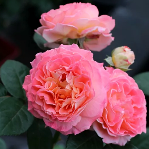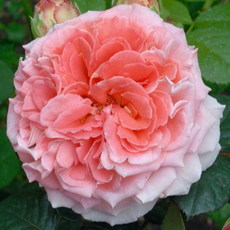Цветки лососево-розовые с белой оборотной стороной, густомахровые, квартированные, старинной формы, собраны в соцветия. Аромат умеренный. Листва блестящая, высокоустойчивая к заболеваниям. Кусты высотой 80 см. Цветение очень обильное, повторное, с мая по октябрь.