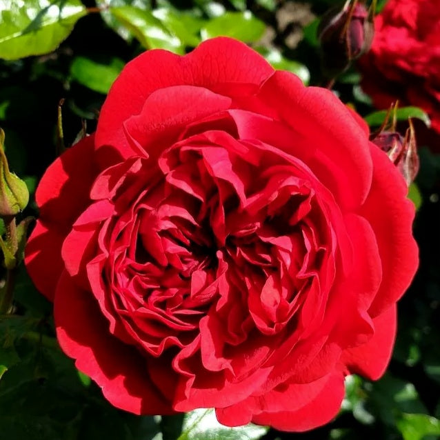Очень устойчивая роза, способная держать длительное цветение даже при устойчивой непогоде, не теряя при этом привлекательности и количества соцветий, интенсивности оттенков. Облиственность куста выше средней, из-за чего он имеет привлекательную форму, близкую к шарообразной. Прочные и прямые побеги с небольшим количеством шипов покрыты темно-зеленой листвой с кожистой поверхностью и зазубренными краями. Поверхность удлиненной листовой пластины гладкая и глянцевая. Сорт обладает длинными сроками цветения и обильным покрытием куста изящными цветками. Окраска лепестков имеет насыщенный классический красный цвет, который можно назвать карминным. Обильное и мощное цветение начинается с середины лета и продолжается непрерывным бутонообразованием до конца осени. Густомахровые цветки имеют чашевидную форму и большое количество лепестков (50-55 шт.) Аромат почти неуловимый, но в нем присутствуют нотки специй.
