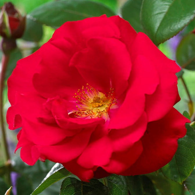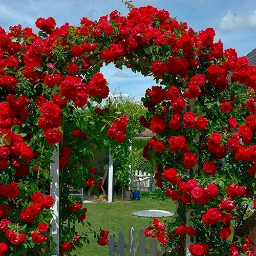 Сорт ярко-красного цвета. Цветки густомахровые, средние по размеру, без аромата, однако этот великолепный сорт впечатляет своим общим видом, яркой окраской, блестящей листвой и отличной стойкостью к зимним холодам, а также обильным цветением до первых осенних заморозков. Куст сильнорастущий, хорошо разветвлённый.